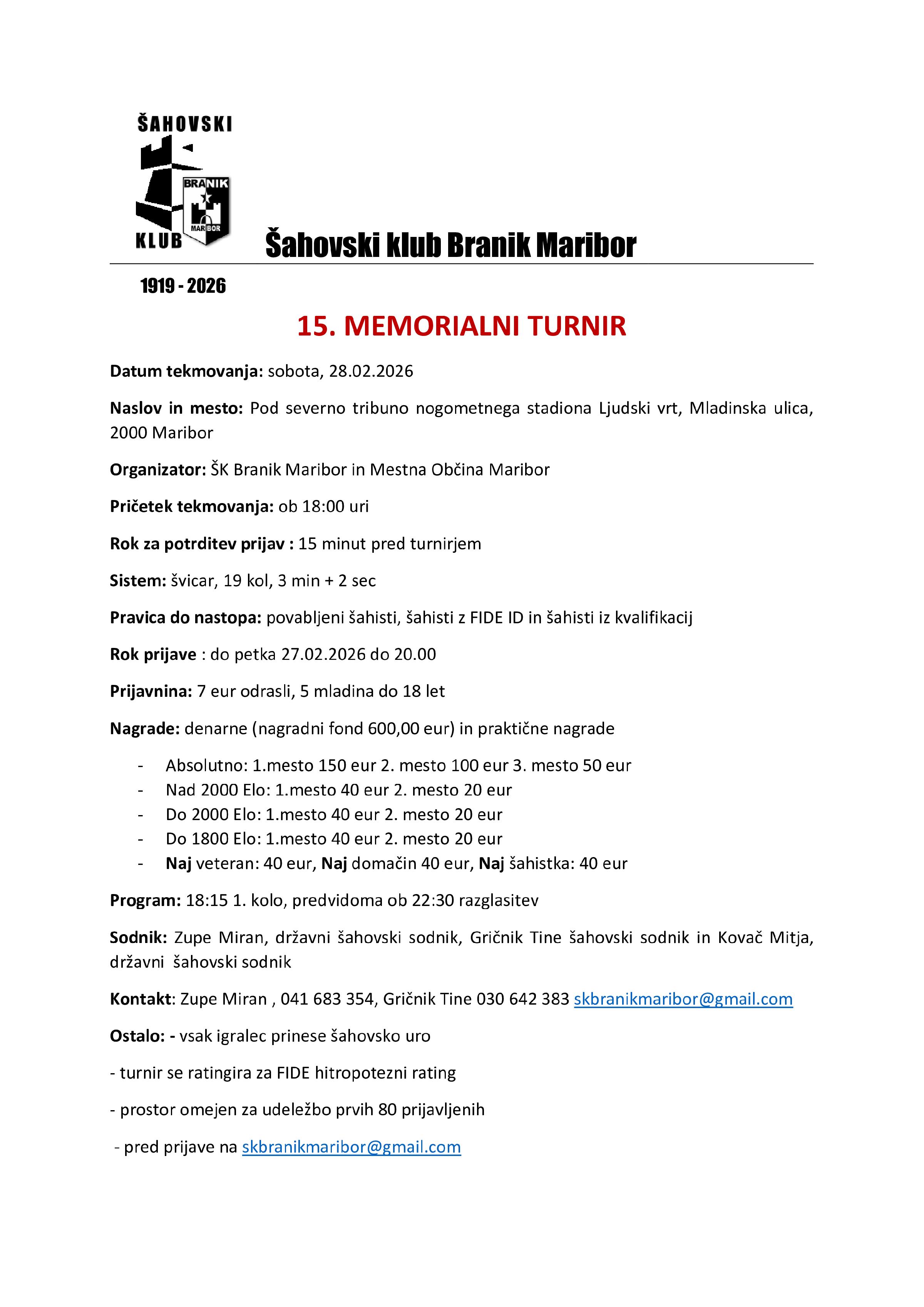 Petek, 13. februar 2026 16:56:30 - NoviceVabilo na 15. memorialni turnir